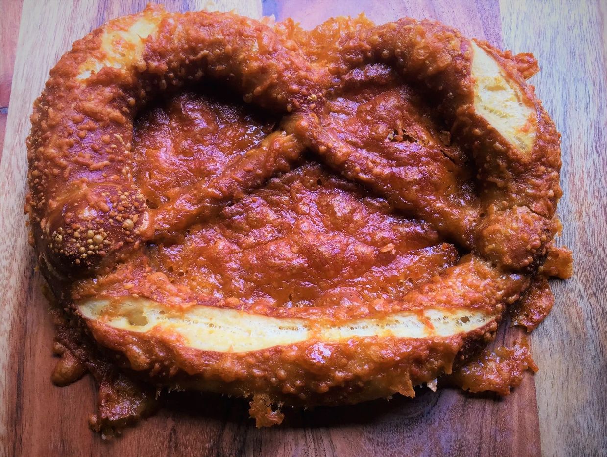This our version of the Kasebretzel which literally means "cheese pretzel" in German. Typically topped with Gruyere or Comte, this type of pretzel is often seen in the border cantons of Austria, Switzerland and Alsace. We put a combination of New England cheddar and smoked paprika over these when we bake them. A wonderfully aromatic scent wafts from the bakery when we open the oven door to take them out. They taste smoky, earthy and woodsy like a walk in the Black Forest. An absolute must have for cheese lovers!